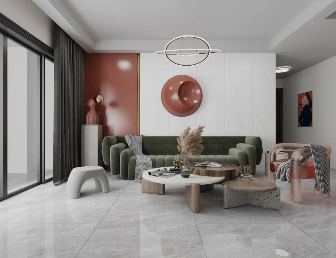 墨綠色的提亮,馬卡龍粉的點綴,莫蘭迪灰的中和......這些看似毫不相幹色彩堆砌,恰恰成就了各自的亮點,讓整個客廳看上去活力四射。